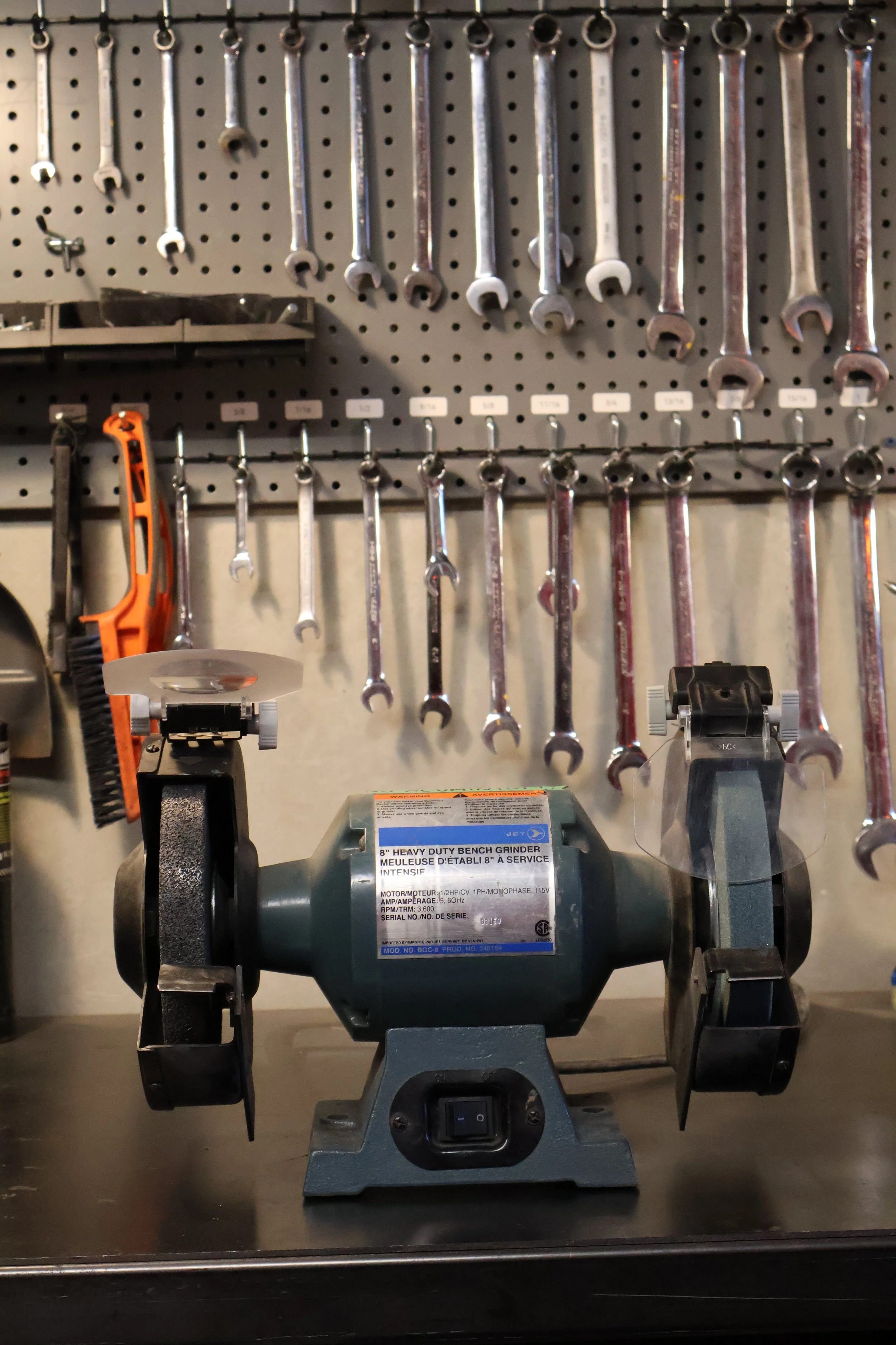 Sharpen blades and tools to a razor edge with a stable 10″ grinding wheel